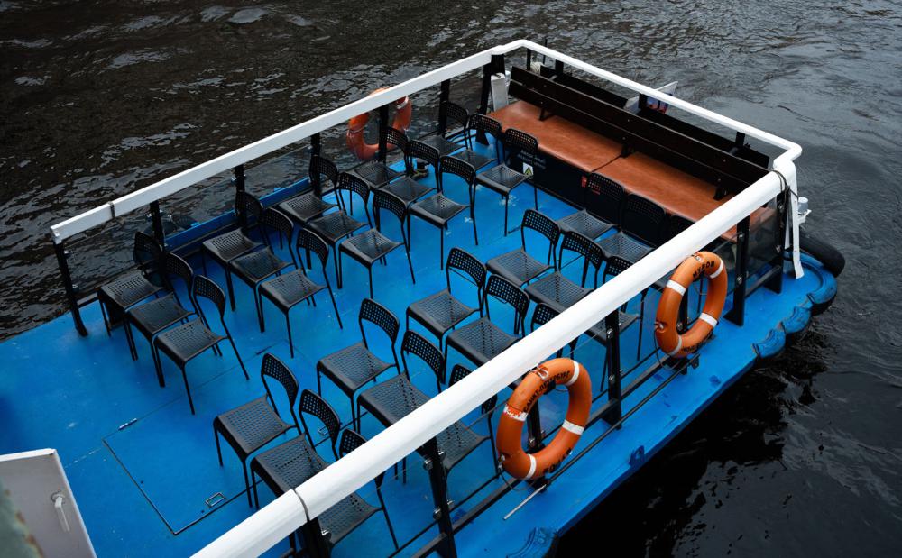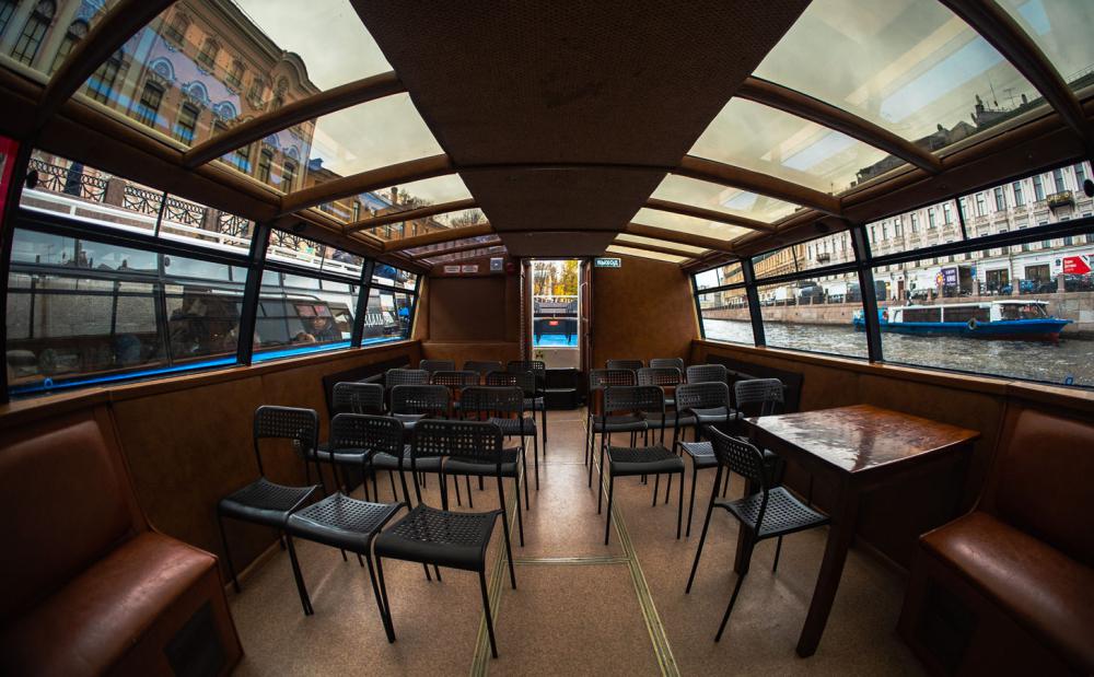 Теплоход с открытой палубой и тёплым салоном, музыкальное сопровождение или аудиогид